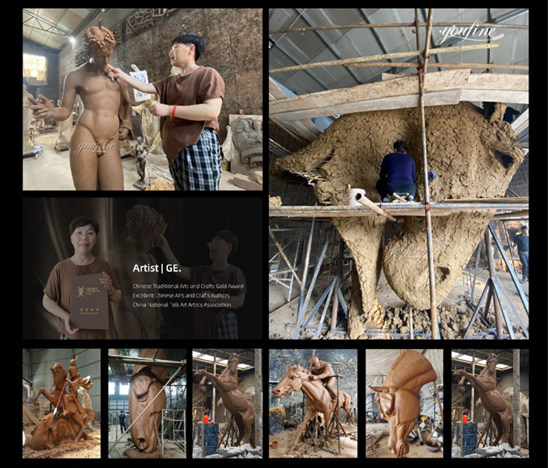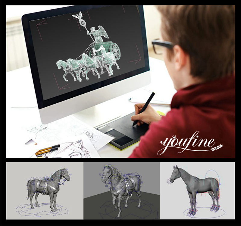 YouFine can meet various customizations for this bronze vaulting horse sculpture. You can send pictures of the effects you want to YouFine’s sculptors who are responsible for the production and design of animal sculptures. These experienced masters have been learning sculpture since they were teenagers. They are very Specializing in the production of animal sculptures, they will conduct 3D modeling and design of your sculpture with accurate data, and then shape it into a 1:1 clay mold. During this process, the master will continuously optimize and restore the details and continue to discuss with you. Confirm, and then proceed to the next step of refined production.