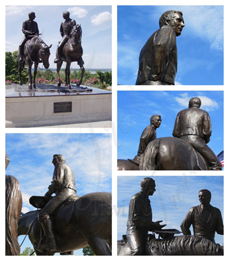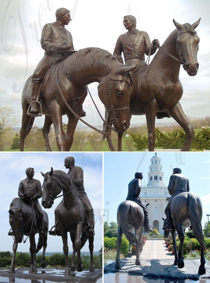 This bronze equestrian statue depicts Joseph and Hyrum riding on horses, and the original work’s location is in Nauvoo. Our bronze equestrian statue is a perfect replica of the original. This bronze equestrian statue is very suitable for decoration in manors, villas, and equestrian clubs. It is also very suitable as a monument to commemorate the outstanding contributions of a certain military figure. For those who like to ride horses, it is also very suitable to be placed in their garden, which would bring unlimited fun to their life.