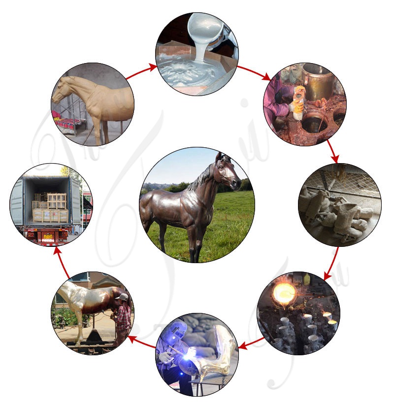 The casting of the bronze equestrian statue requires the use of the ancient and strict traditional lost wax process. The lost wax process requires the use of 32 complex processes, the most important of which are making clay models – making wax shells – modifying wax shells – making sand shells – making Bronze shells – welding – and polishing – patina, each step is studied repeatedly many times to achieve the perfect finished product.